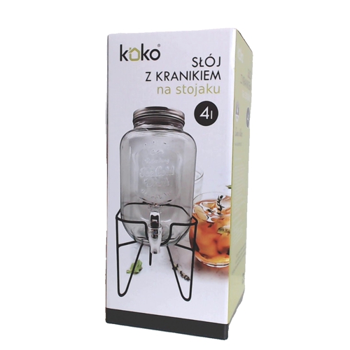 Burka stikla 4L ar krānu un metāla statīvu